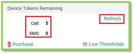 4. Scroll down to "Device Tokens Remaining" and tap on the type of tokens you wish to buy, choosing between SMS tokens or call tokens. Please pay careful attention to your token type you selected, as once tokens are purchased, the action cannot be reversed.