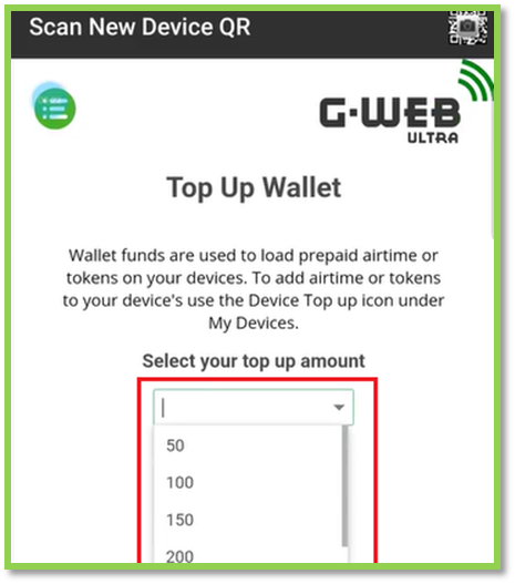 1. Open the G-web app and tap the device you want to top up2. Tap on the "Configure" option.