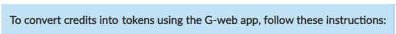 7. The tokens you've purchased will now show up in the G-web app. If you don't see them, please click on the "refresh" button to update the the currant balance.